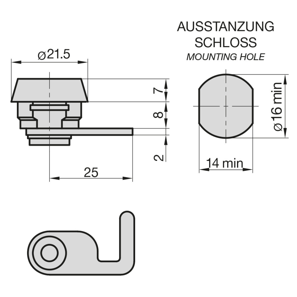tengelyközéptől 25 mm hosszú és 2 mm vastag zárnyelv