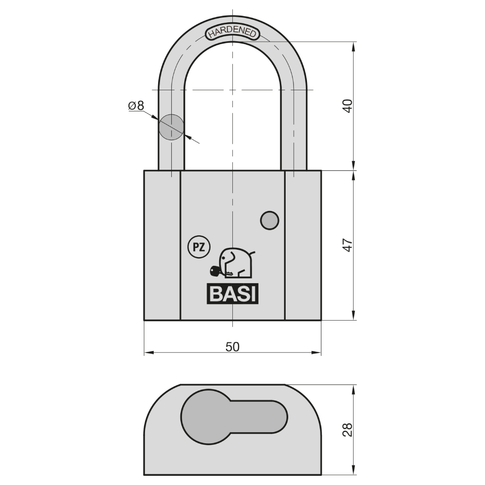 edzett acél kengyel, kétoldali reteszeléssel