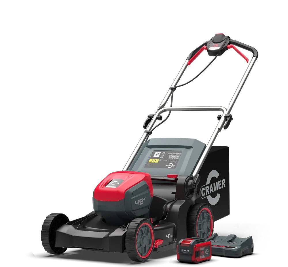 - Fűnyíró fűgyűjtős akkumulátoros készlet Cramer 48LM41K4 akkumulátorral és töltővel 2505686UB-CR