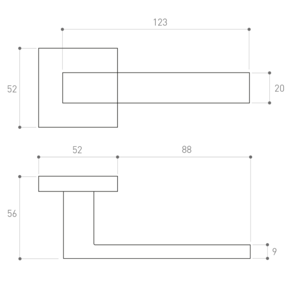 szögletes rozetta és kilincs forma
