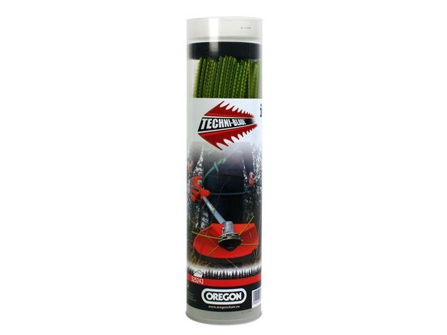 Oregon gyártmányú Techni-Blade típusú damil, 205 darab 26 centiméteres előre szabott damilszálak, 6.0 mm átmérőjű, szögletes, fogazott profilú.